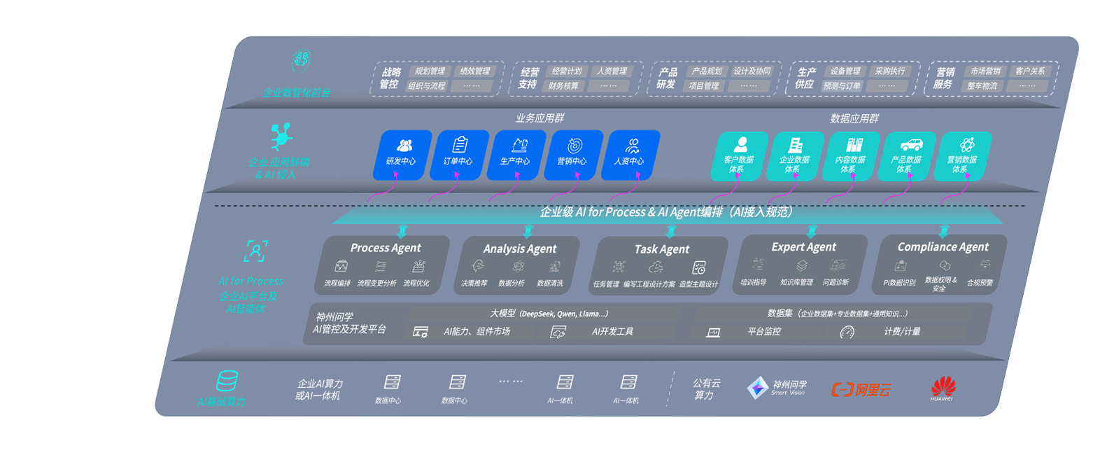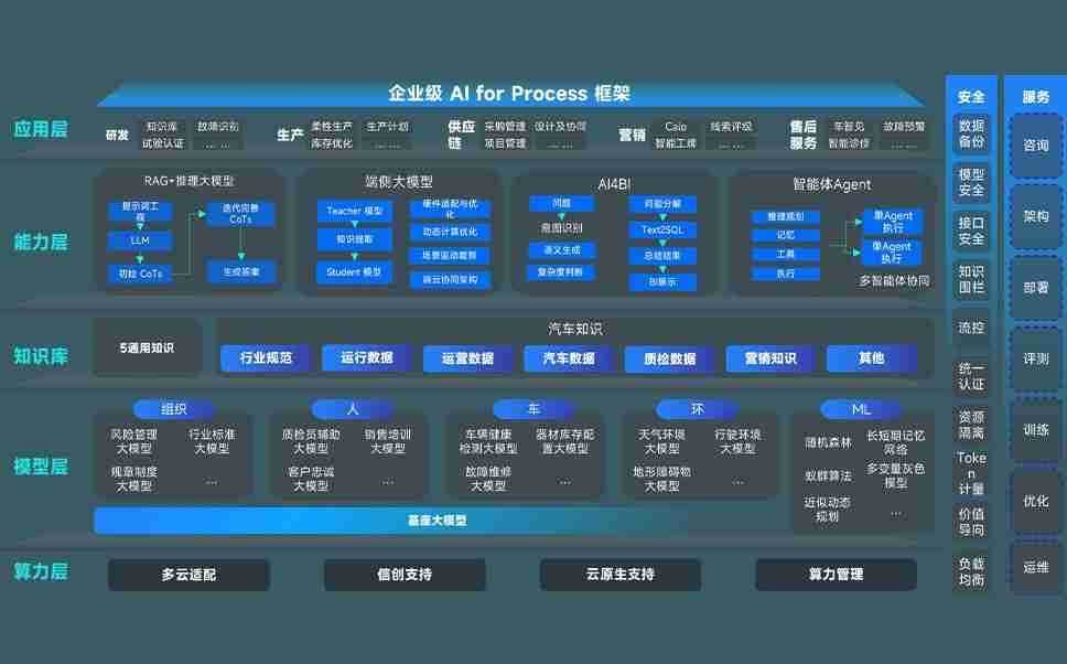 端到端的一站式AI工作空间深度融合了从企业战略规划到日常经营的全流程业务板块,,,,定向解决车企内部领域多、、、部门多、、、链条长、、、、场景碎片化等难题,,,,支持车企快速构建以AI为核心的生产力写作体系,,,实现任务执行与AI能力的无缝集成与交互
